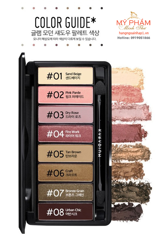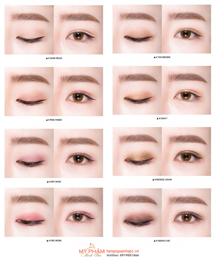 Bảng màu gồm 8 màu là sự kết hợp cả hai loại phấn nhũ và phấn lì thời trang, giúp bạn dễ dàng trang điểm đa dạng phong cách hơn như đi học, đi chơi, đi tiệc, đi làm….
