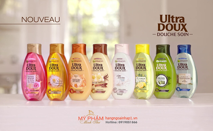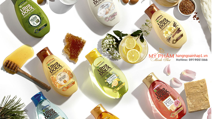 Dòng sữa tắm Garnier Ultra Doux với các thành phần từ thiên nhiên sẽ giúp làm sạch nhẹ nhàng làn da của bạn, đồng thời nuôi dưỡng, bảo vệ và cân bằng độ ẩm tự nhiên để làn da trở nên mềm mại, mịn màng hơn.